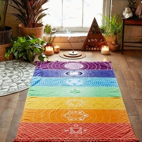 Multifunctional meditation rug. You can either lay it on the ground or hang it on the wall.