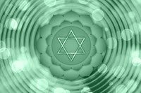 At the center of your chest lies the Heart Chakra, Anahata, glowing with a gentle green light. Its symbol is a twelve-petaled lotus, featuring two intersecting triangles forming a six-pointed star—a union of opposites and the element of air.